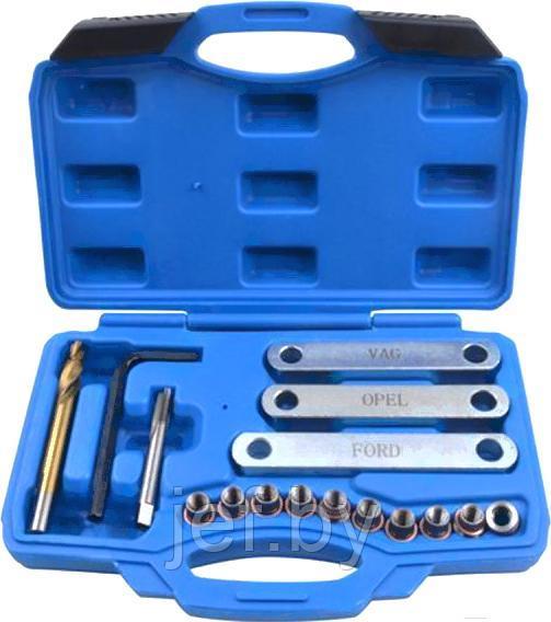 Набор для восстановления резьбы в суппортах группы VAG, OPEL, FORD из 16 предметов в кейсе - это надежное и практичное решение для ремонта и улучшения состояния автомобильных деталей. Наш набор включает в себя все необходимые инструменты, чтобы качественно восстановить резьбовое отверстие в детали без необходимости ее полной замены. Инструменты изготовлены из высококачественных материалов, что гарантирует долгий срок службы и эффективную работу. Комплектация: сверло, метчик, ключ, планки - 3шт, футорки - 10шт.