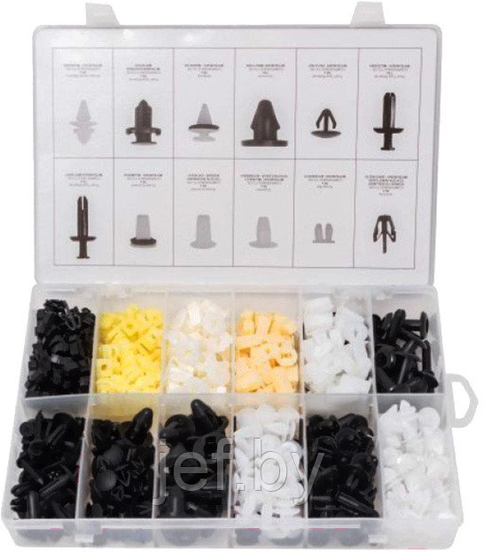 Набор крепежа для авто из 370 предметов для MITSUBISHI в пластиковом органайзере закрепляют множество деталей внутри кузова и салона. Они придают транспортному средству индивидуальный стиль и делают его внешний вид аккуратным и красивым. Заклепки автомобильные фиксируют детали интерьера, бампер, разные провода, защиту колесных арок и элементы тюнинга. Прочный материал и надежное крепление пистонов для авто являются определяющим критерием при их выборе. Практичные крепежные зажимы, которые выполнены из нейлонового волокна. Материал износостойкий, антикоррозийный и долговечный, также отличается прекрасным качеством. Все они аккуратно разложены по ячейкам кейса, в зависимости от вида их крепления. Таким образом, клипсы крепежные автомобильные легко использовать, хранить и транспортировать. Удобный и компактный кейс под набор клипс для авто легко брать с собой, хранить прямо в автомобиле и перевозить — крепеж автомобильный занимает минимум места, а прозрачный пластик позволяет достать нужный вид крепления с первого раза.