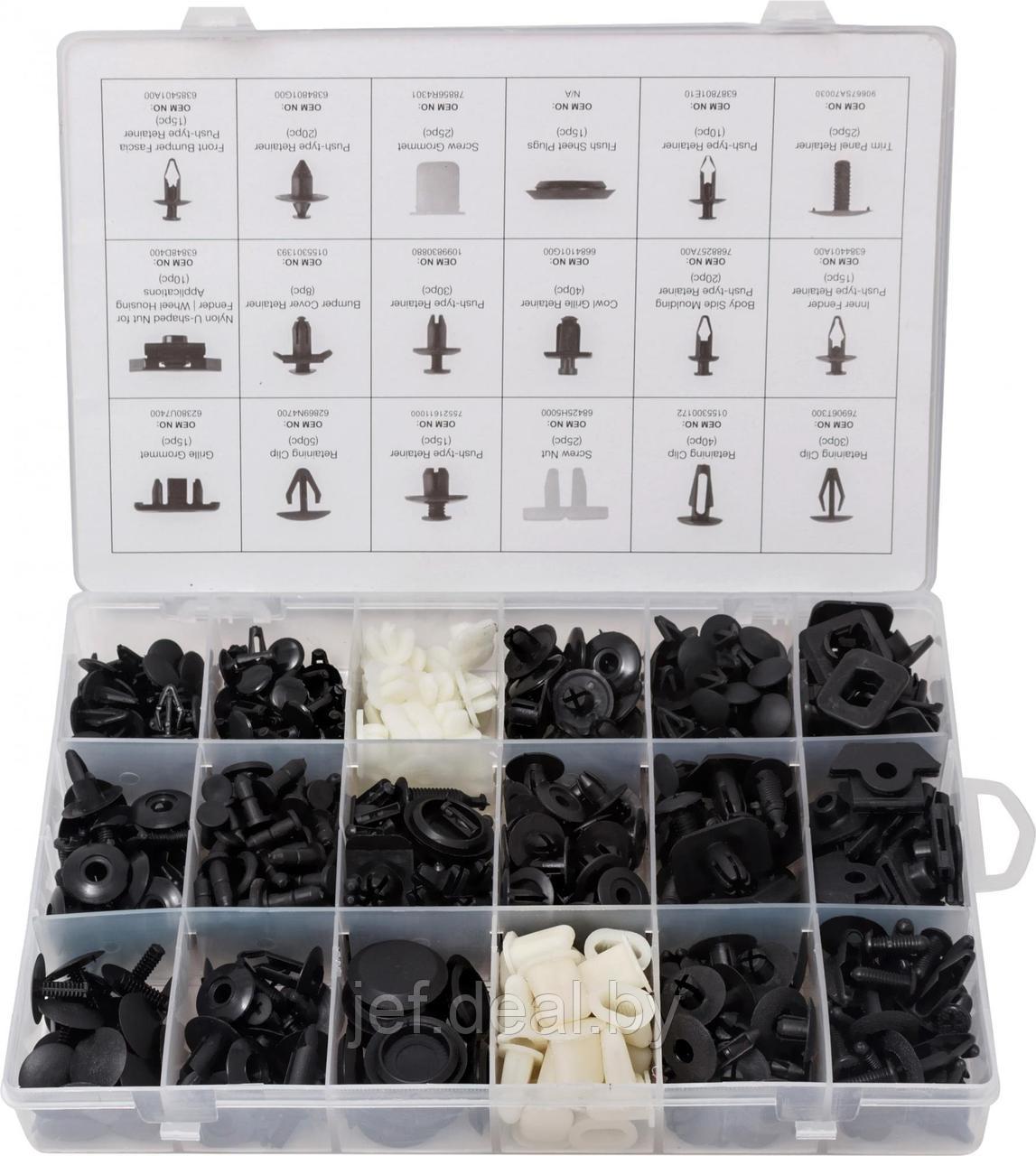 Набор крепежа для авто из 408 предметов для NISSAN в пластиковом органайзере закрепляют множество деталей внутри кузова и салона. Они придают транспортному средству индивидуальный стиль и делают его внешний вид аккуратным и красивым. Заклепки автомобильные фиксируют детали интерьера, бампер, разные провода, защиту колесных арок и элементы тюнинга. Прочный материал и надежное крепление пистонов для авто являются определяющим критерием при их выборе. Практичные крепежные зажимы, которые выполнены из нейлонового волокна. Материал износостойкий, антикоррозийный и долговечный, также отличается прекрасным качеством. Все они аккуратно разложены по ячейкам кейса, в зависимости от вида их крепления. Таким образом, клипсы крепежные автомобильные легко использовать, хранить и транспортировать. Удобный и компактный кейс под набор клипс для авто легко брать с собой, хранить прямо в автомобиле и перевозить — крепеж автомобильный занимает минимум места, а прозрачный пластик позволяет достать нужный вид крепления с первого раза.