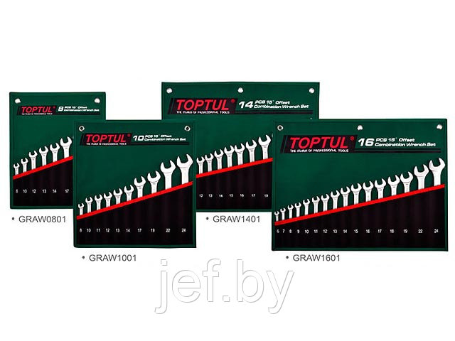 Набор ключей комбинированных 15° 8 шт в сумке TOPTUL GRAW0801