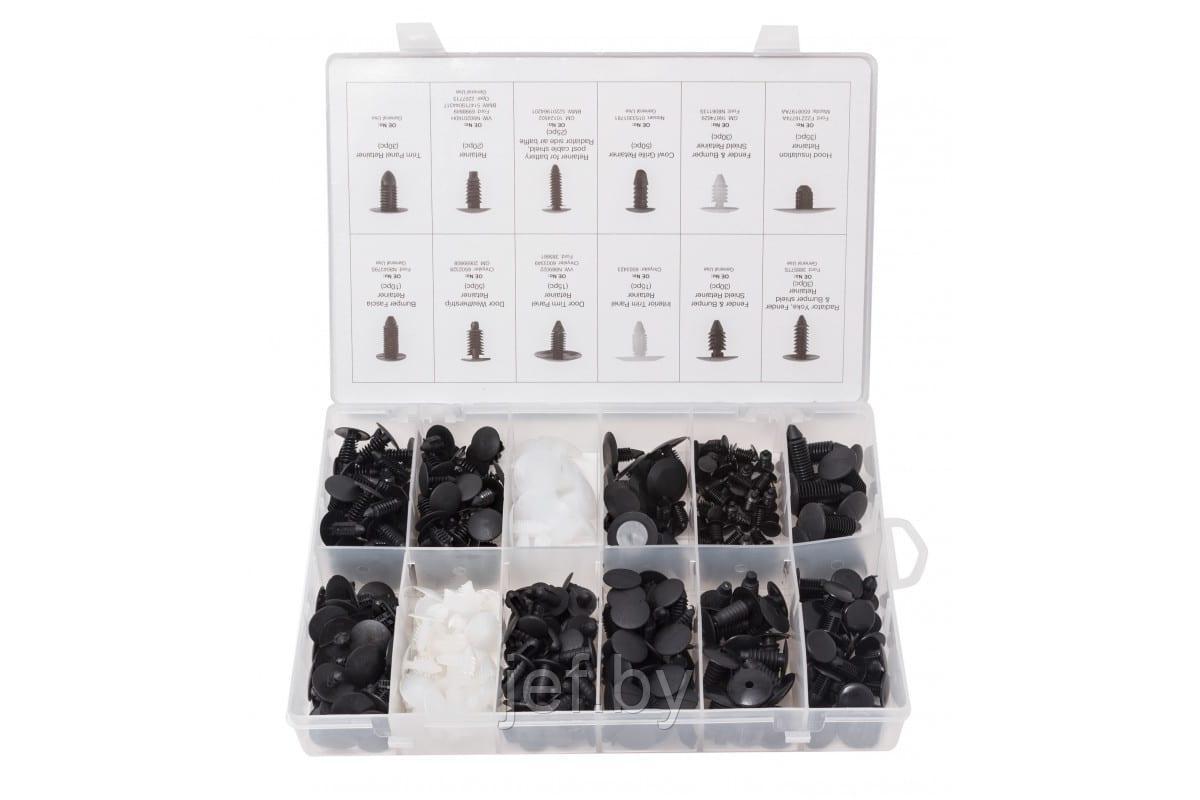 Набор крепежа для авто из 340 предметов универсального в пластиковом органайзере закрепляют множество деталей внутри кузова и салона. Они придают транспортному средству индивидуальный стиль и делают его внешний вид аккуратным и красивым. Заклепки автомобильные фиксируют детали интерьера, бампер, разные провода, защиту колесных арок и элементы тюнинга. Прочный материал и надежное крепление пистонов для авто являются определяющим критерием при их выборе. Практичные крепежные зажимы, которые выполнены из нейлонового волокна. Материал износостойкий, антикоррозийный и долговечный, также отличается прекрасным качеством. Все они аккуратно разложены по ячейкам кейса, в зависимости от вида их крепления. Таким образом, клипсы крепежные автомобильные легко использовать, хранить и транспортировать. Удобный и компактный кейс под набор клипс для авто легко брать с собой, хранить прямо в автомобиле и перевозить — крепеж автомобильный занимает минимум места, а прозрачный пластик позволяет достать нужный вид крепления с первого раза.