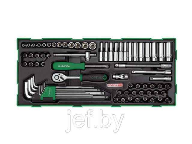 Ложемент TOPTUL набор головок, шестигранников Г-образных с шаровым окончанием с принадлежностями 1/4" 72 предмета GTB7202 - изготовлен из высококачественных инструментальных материалов, что обеспечит надежность и долговечность инструмента в ходе эксплуатации.