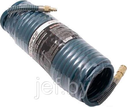 Шланг витой полиуретановый с быстроразъемами.Основные характеристикиТип: шланг для компрессора, Рабочее давление (бар): 15 (макс.),Сечение воздушного шланга (мм): 12 (внеш., 8 мм - внутр.),Длина шланга (м): 10.