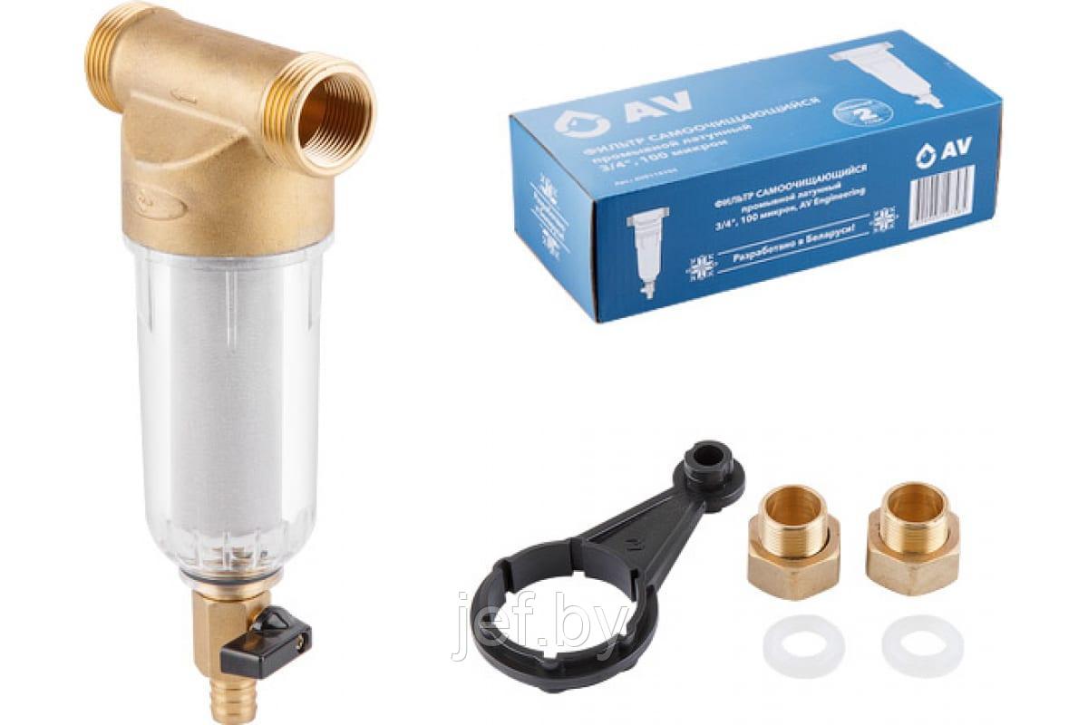 Фильтр самоочищающийся промывной латунный 3/4", 100 микрон AV ENGINEERING AVE115704