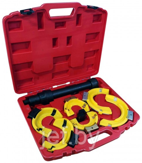 Усиленная стяжка пружин Patron P-4274 с 3-мя парами захватов и пластиковыми накладками в кейсе из 7 предметов, предназначена для быстрого и удобного сжатия пружин стоек передней и задней подвески автомобиля.