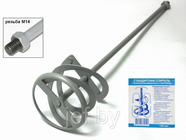 Насадка изготовлена в форме спирали и может применятся как для перемешивания тяжелых и вязких растворов и смесей (бетон, штукатурка, заливочные компаунды, смолы, бесшовный пол), так и для смешивания красок, лаков и прочих легких текучих смесей. Используются на миксер-дрелях с посадочной резьбой М14. Рекомендуется использование на малых оборотах.