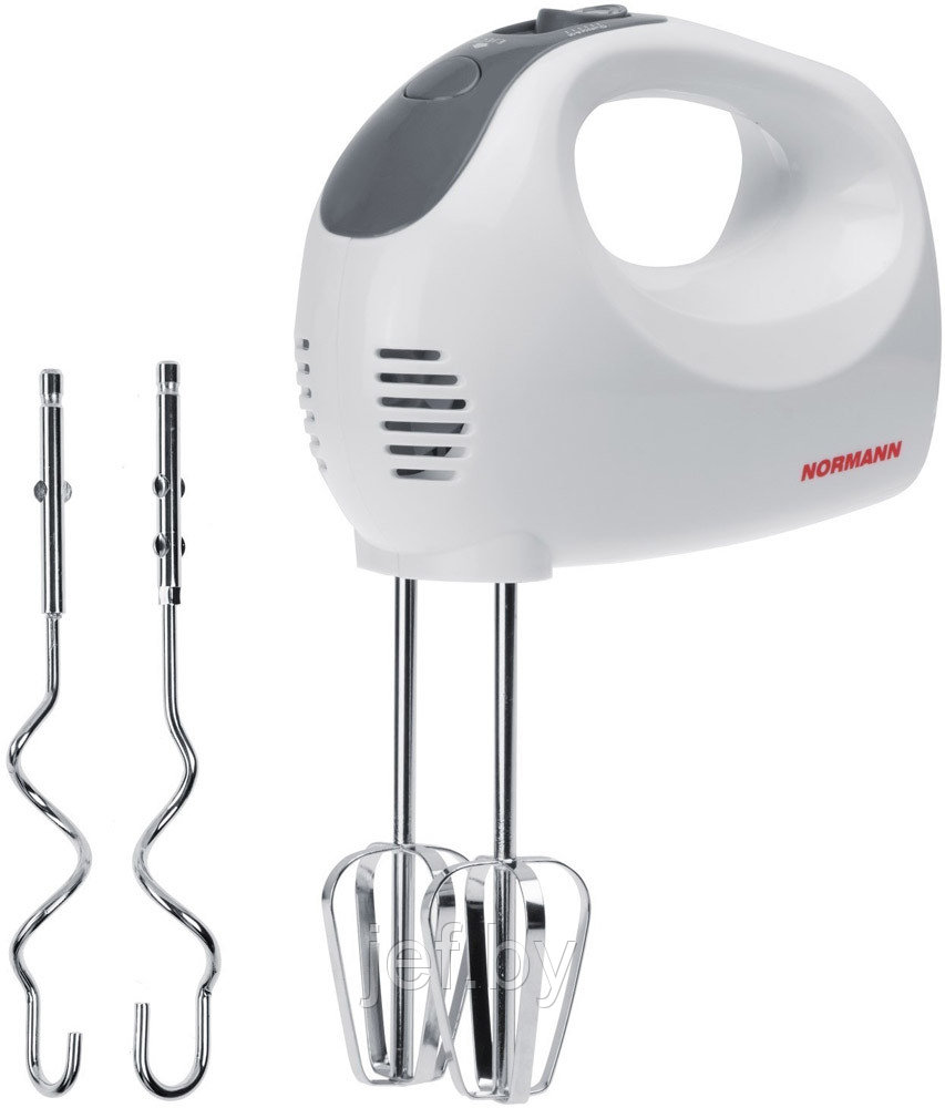 Миксер NORMANN AMX-474 предназначен для смешивания жидкостей, приготовления соусов и десертов (взбитых сливок, пудингов, коктейлей, майонеза) с помощью венчиков, входящих в комплект прибора, а также для замешивания теста различной консистенции тестомесильными крюками. Прибор имеет 5 скоростей. Максимальная мощность прибора 200 Вт.