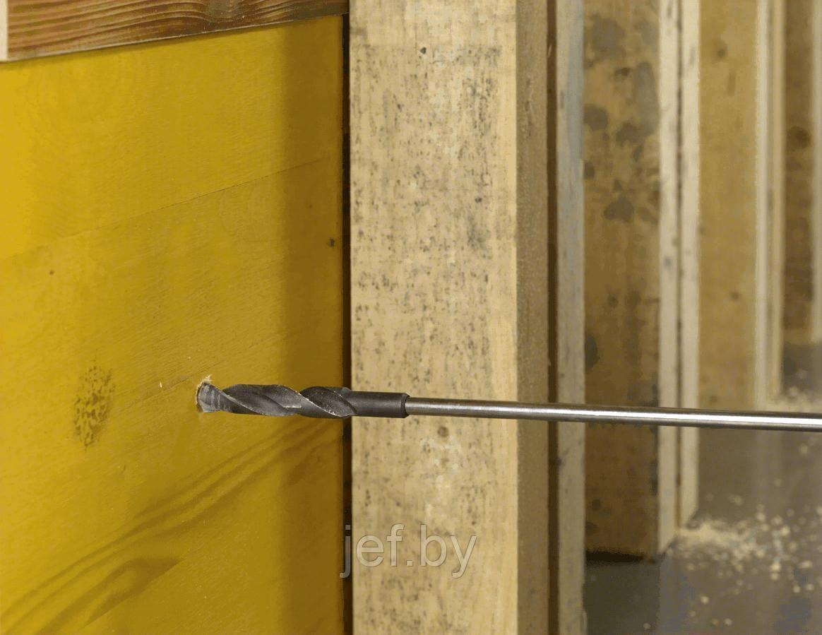 Коническая канавка, смещение концов сверла и хвостовика предотвращают заклинивание во влажной древесине и сверлят гвозди